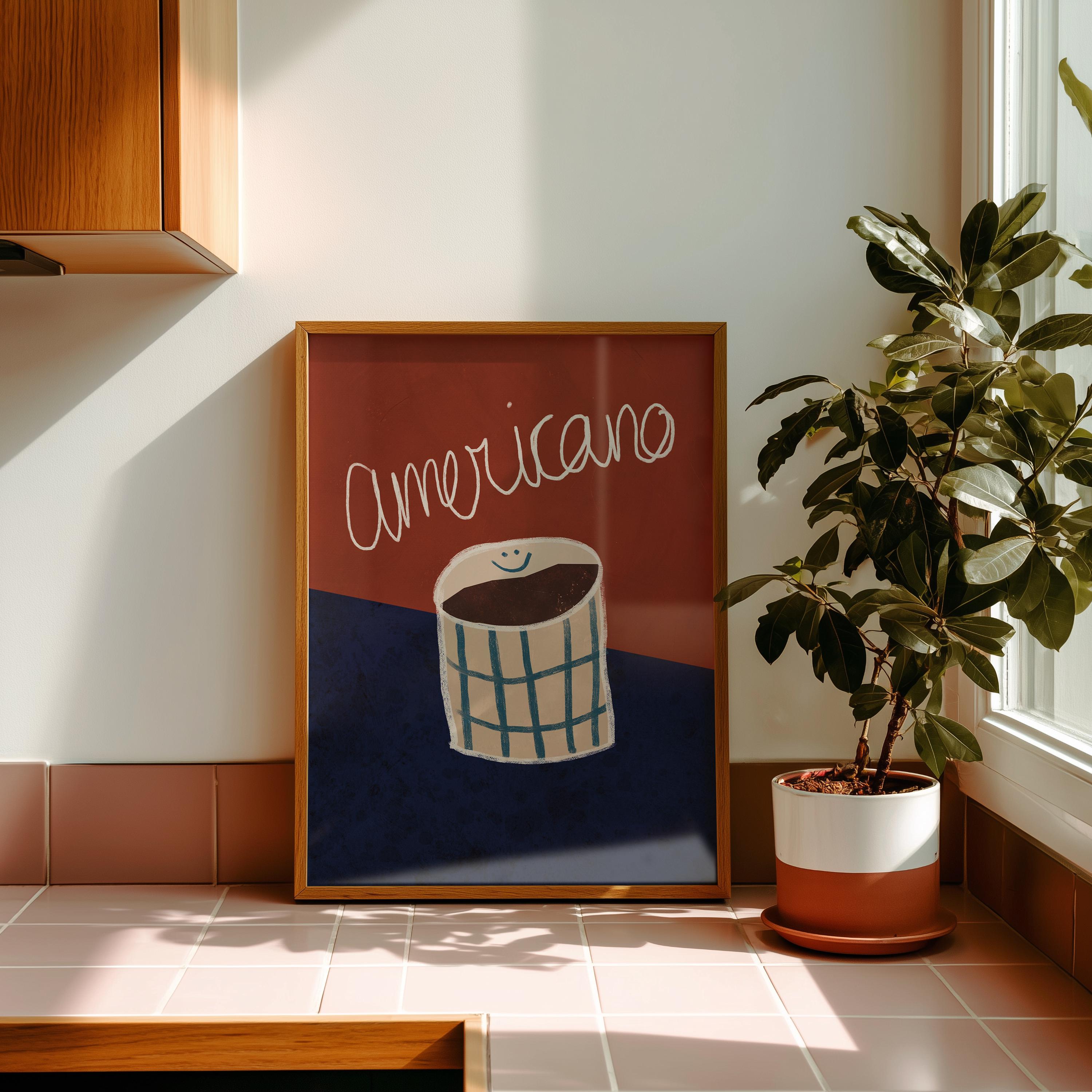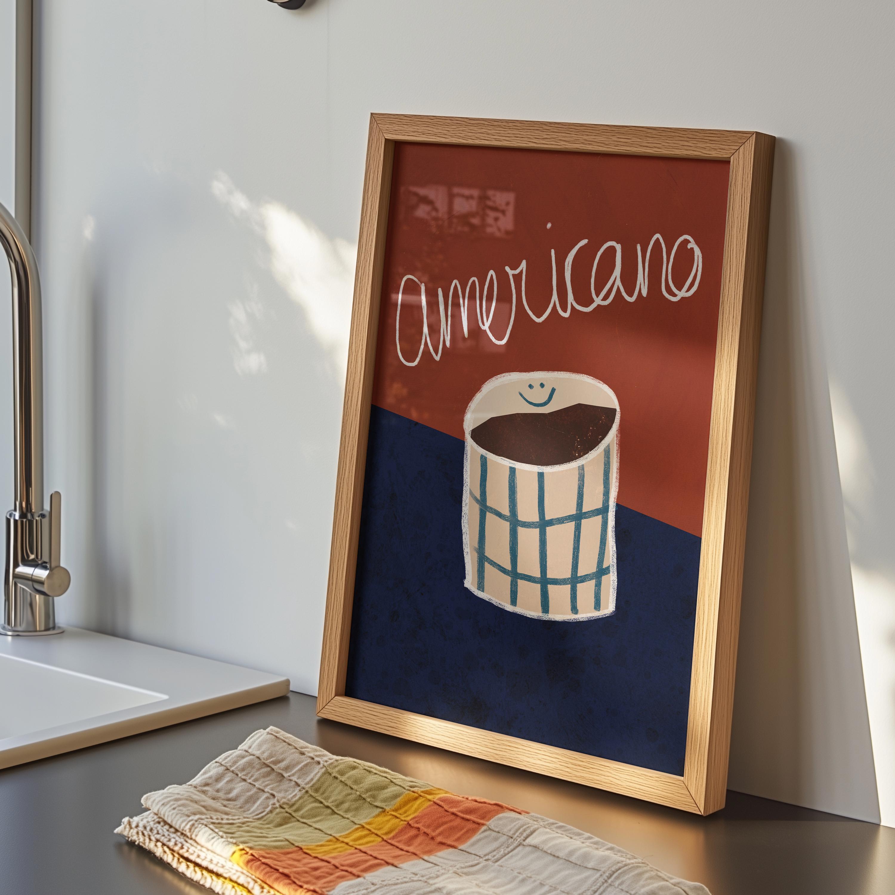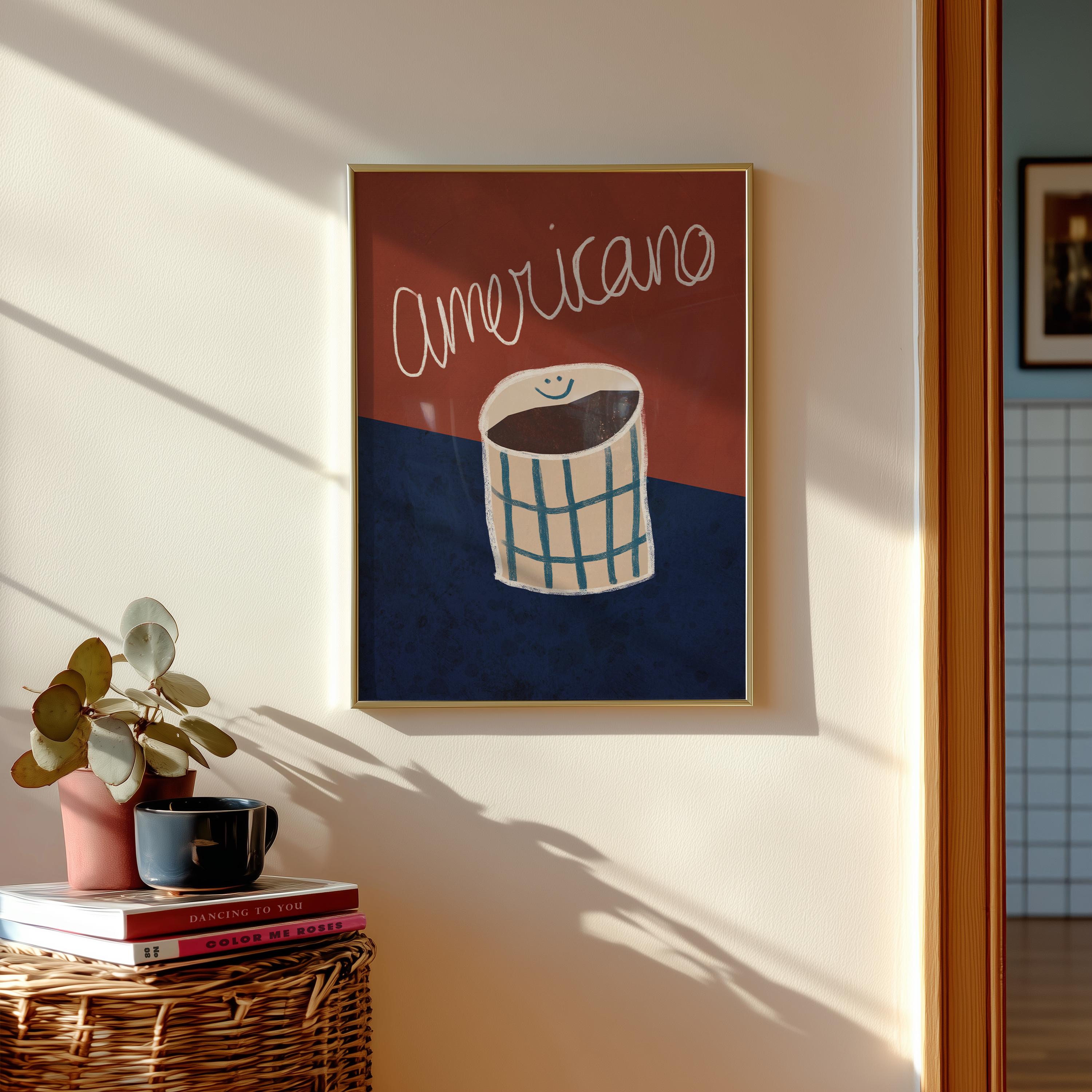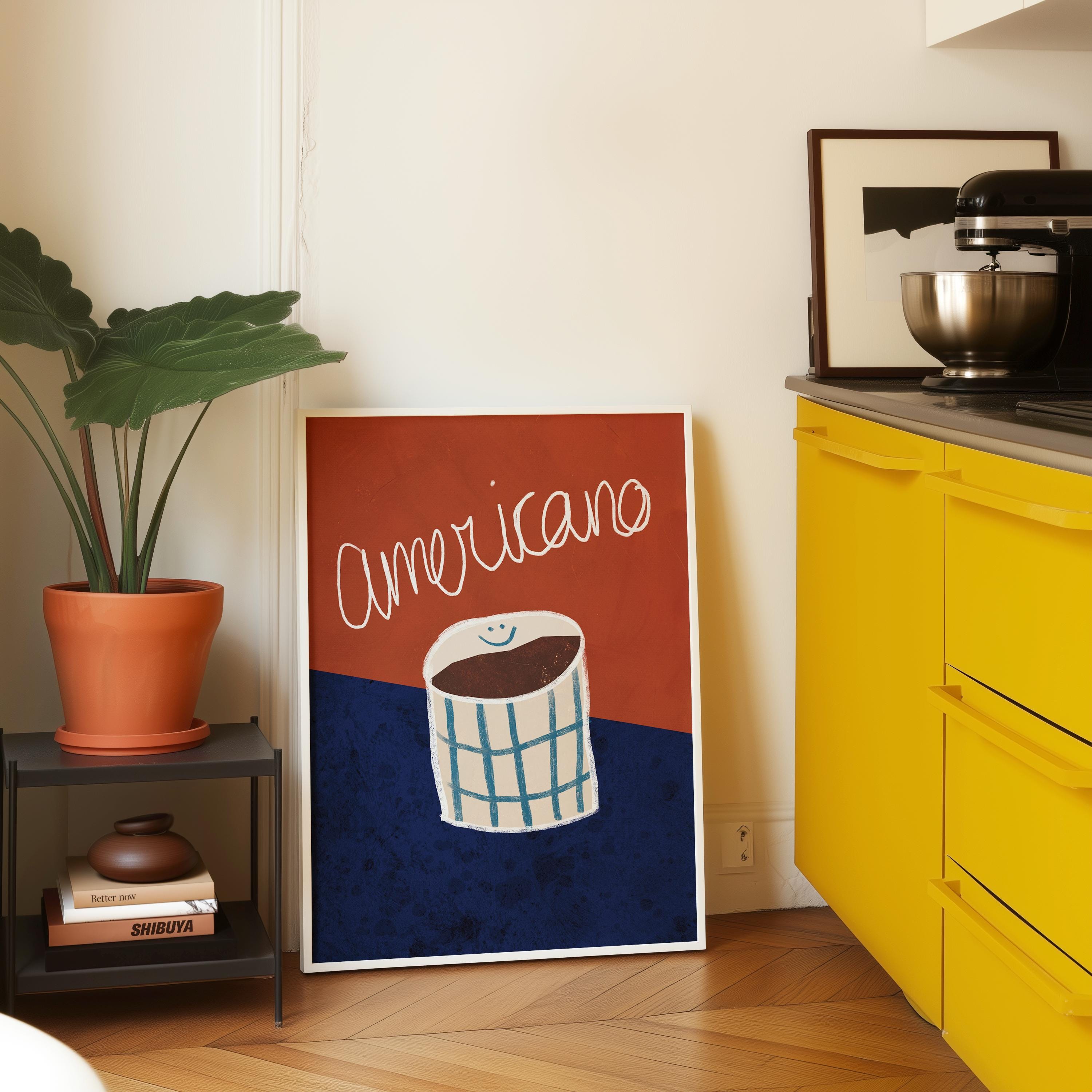 Designed for lovers of clean, Scandinavian-inspired interiors, this bold yet refined print blends deep red and rich blue tones to create a cozy and stylish atmosphere. The perfect statement piece for a coffee corner, modern kitchen, or café-inspired space.