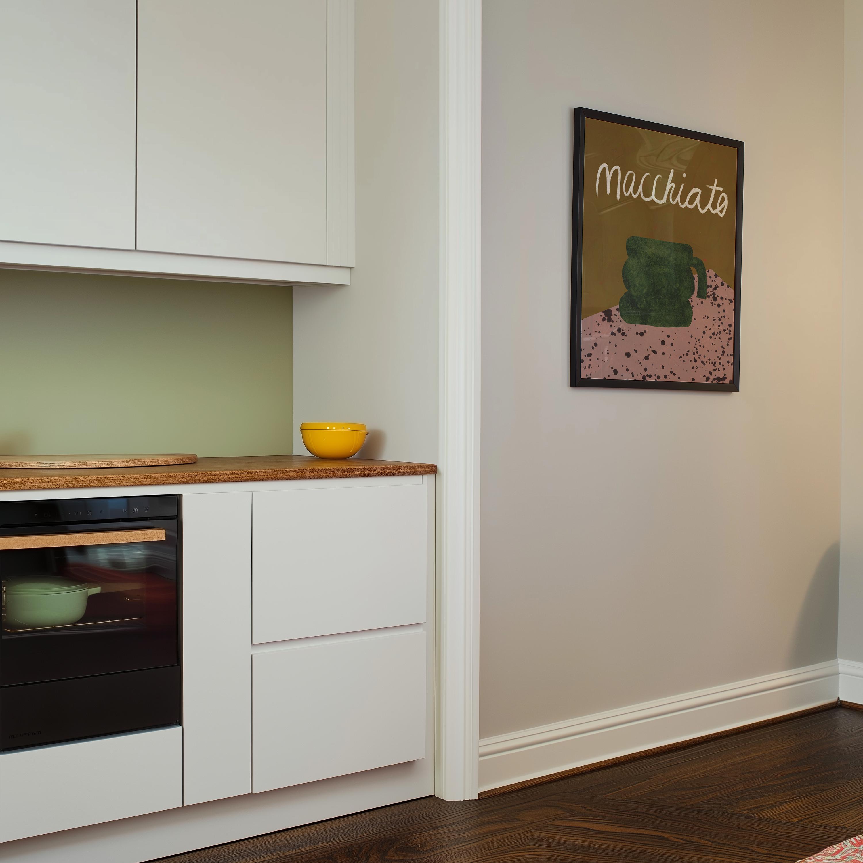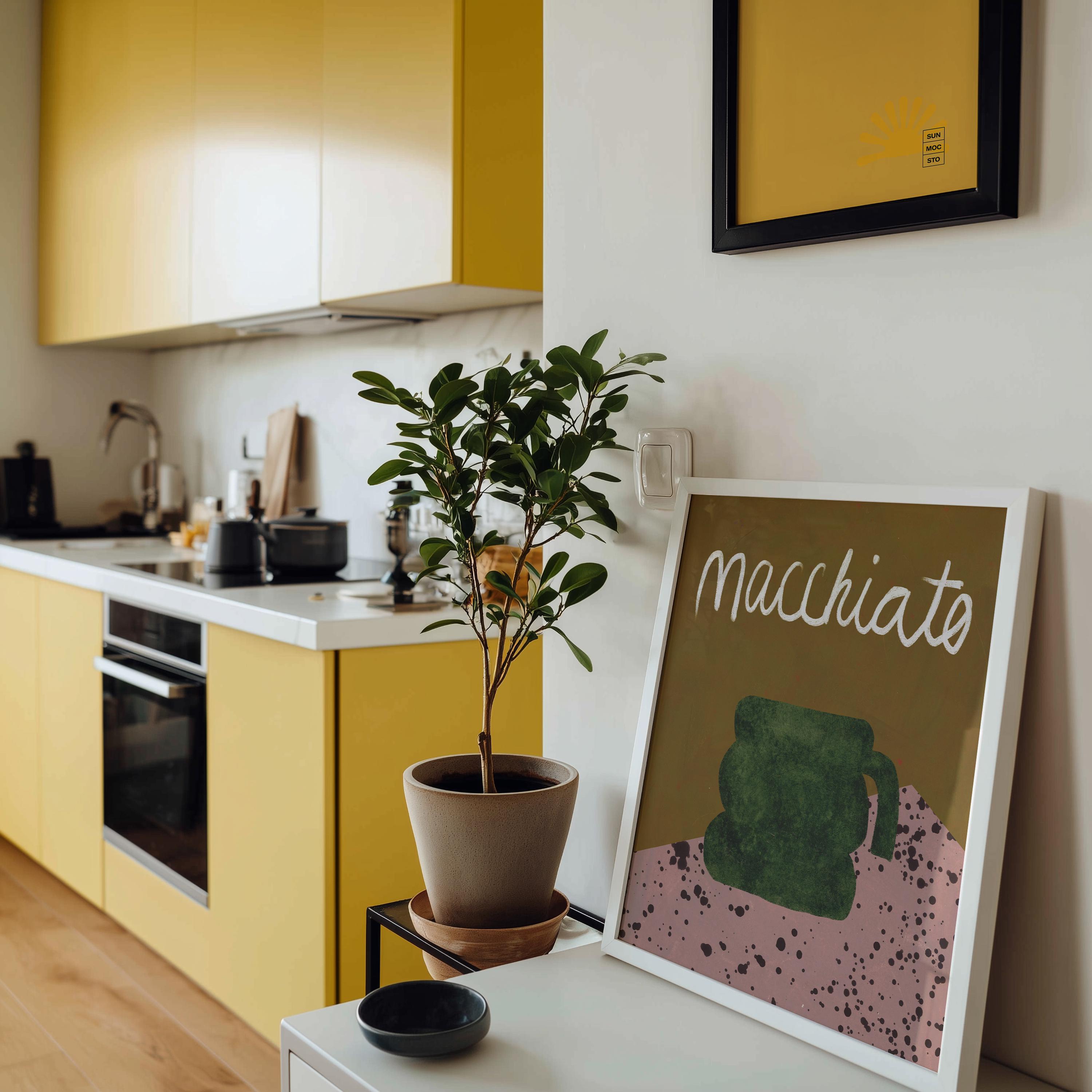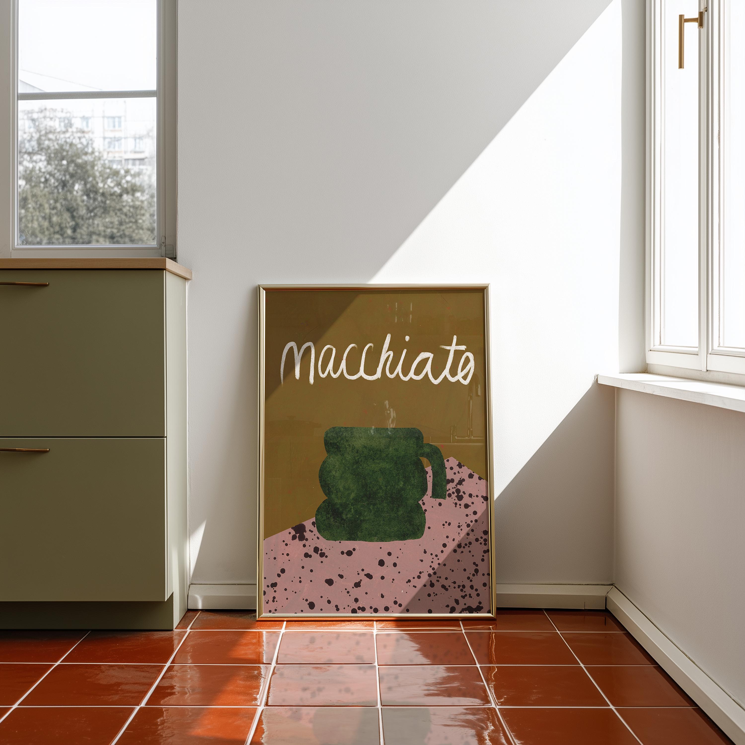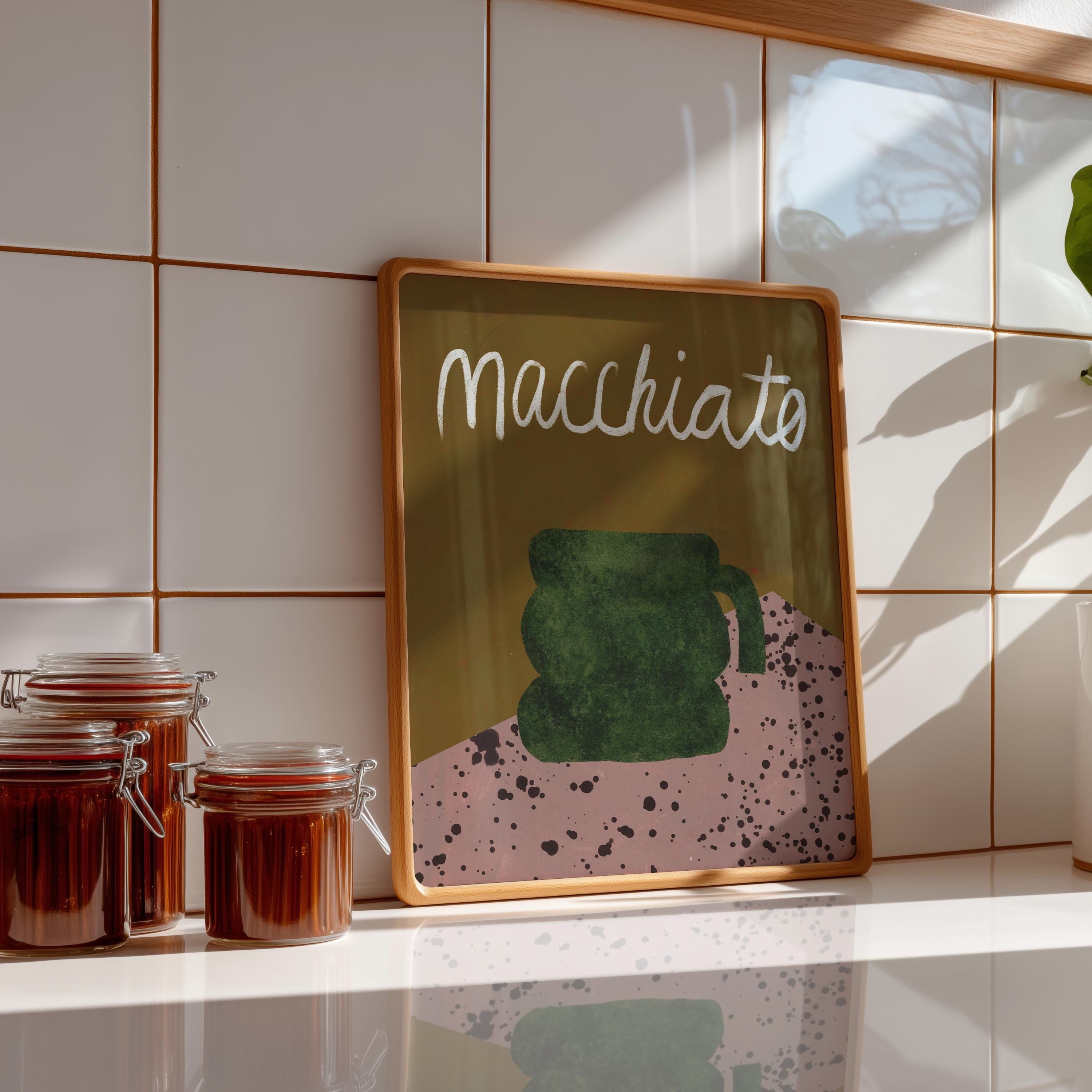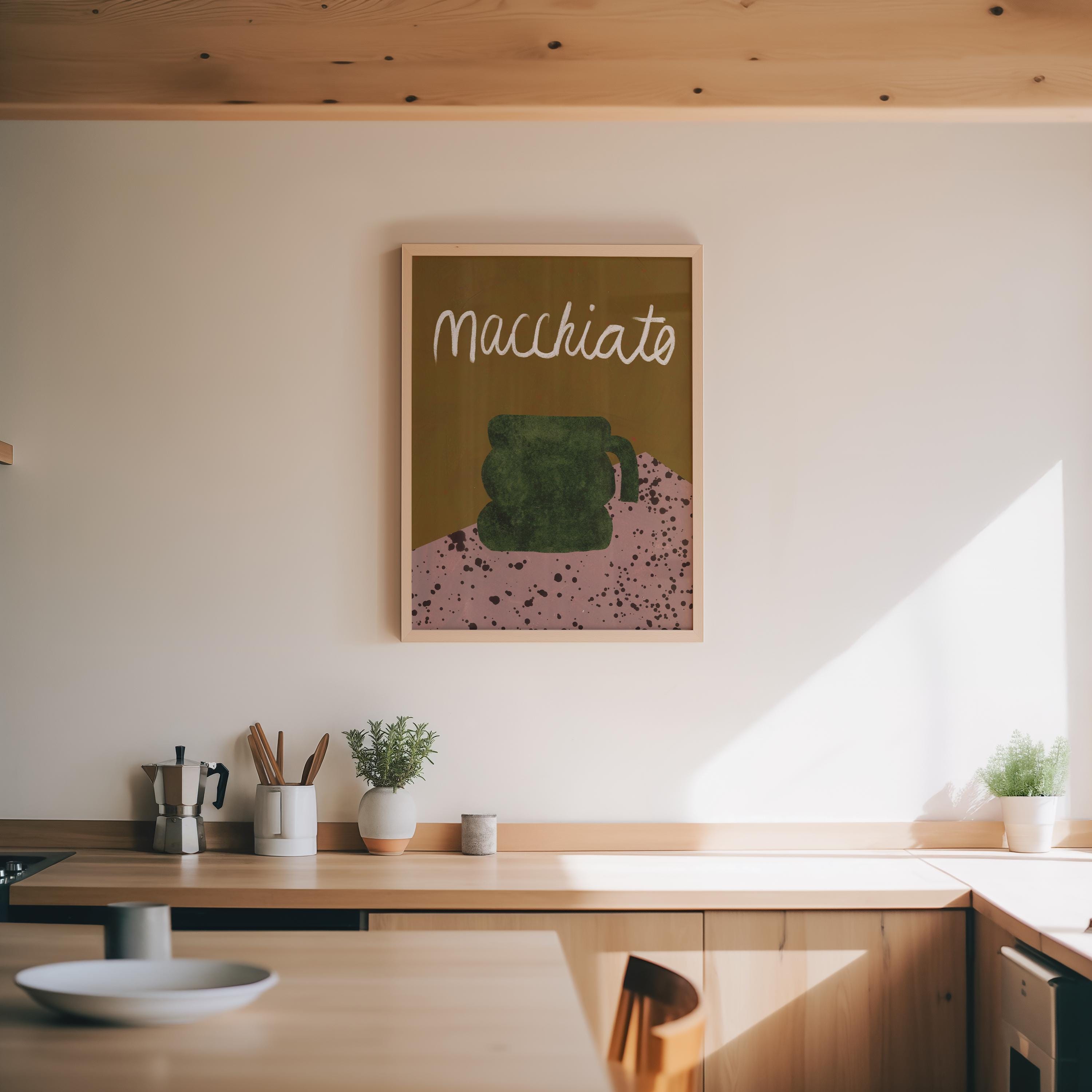 Bring warmth and café charm into your home with this minimalist Macchiato wall art print.